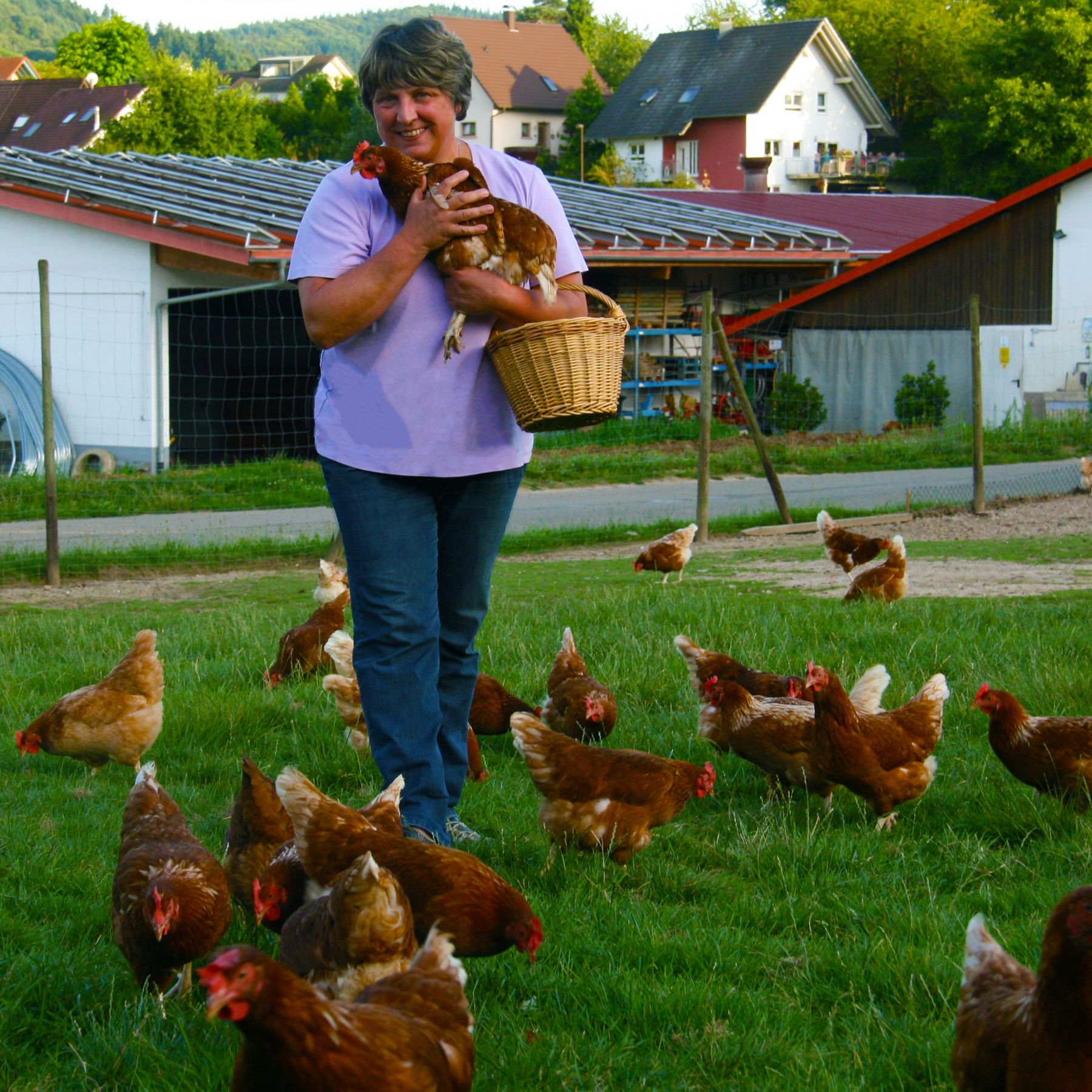 Der Bächlehof der Familie Hildenbrand steht seit über 750 Jahren für natürlichen Genuss und Qualität mit Achtung vor dem Tier und der Natur. Auch heute noch lebt die Hühnerschar gemeinsam mit der Familie auf dem Hof. Auf den grünen Wiesen rund um den Bächlehof in Bottenau fühlen sie sich sichtlich wohl: Der Hahn kräht und seine Hühner gackern, picken nach Nahrung oder scharren eifrig in der Erde – eine Idylle, wie sie heute leider viel zu selten zu sehen ist.